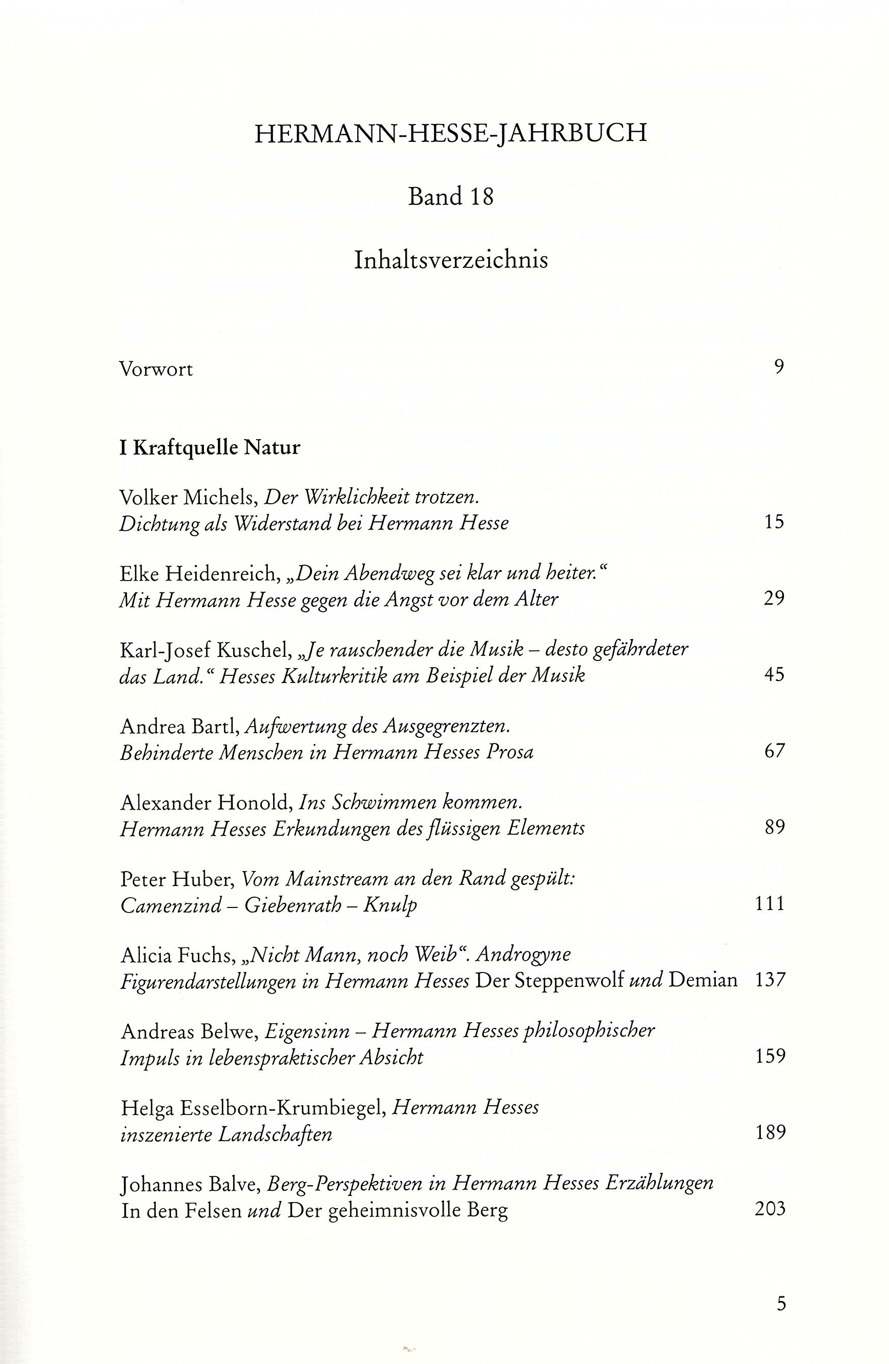 Hermann Hesse-Jahrbuch Band 18, 364 Seiten, Hardcover, 48.-- Euro, ISBN 978-3-8260-9588-7