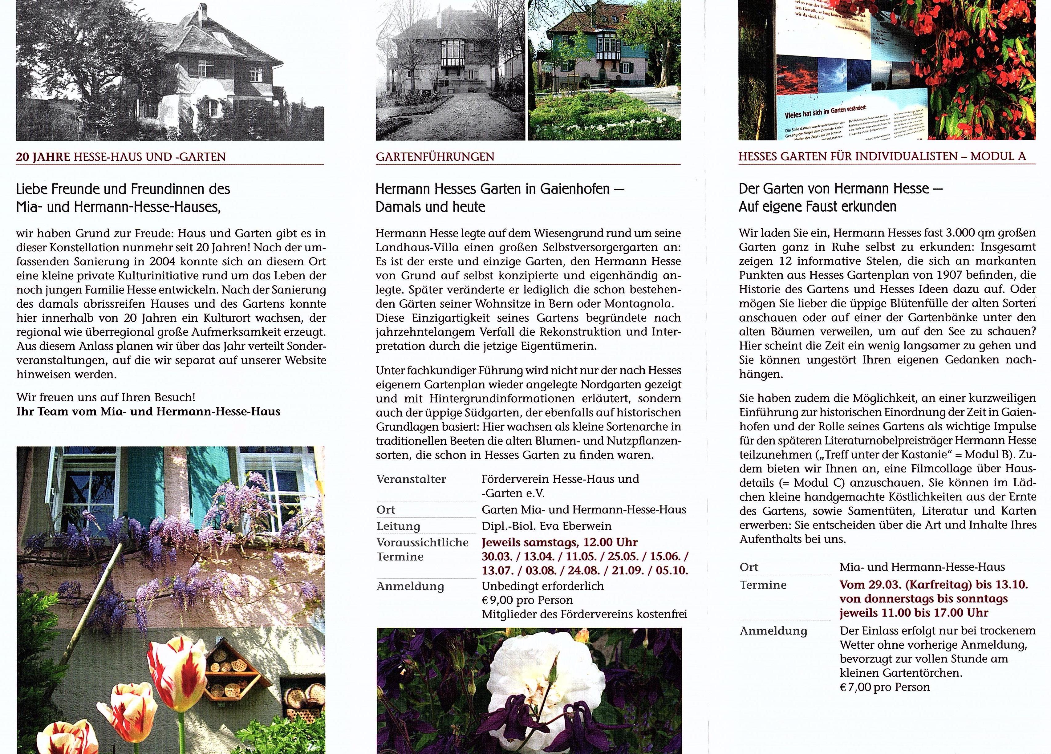 Das Mia-und-Hermann-Hesse-Haus in Gaienhofen legt in diesem Jahr zum 20. Mal ein Veranstaltungsprogramm vor. Hier kann es eingesehen werden: