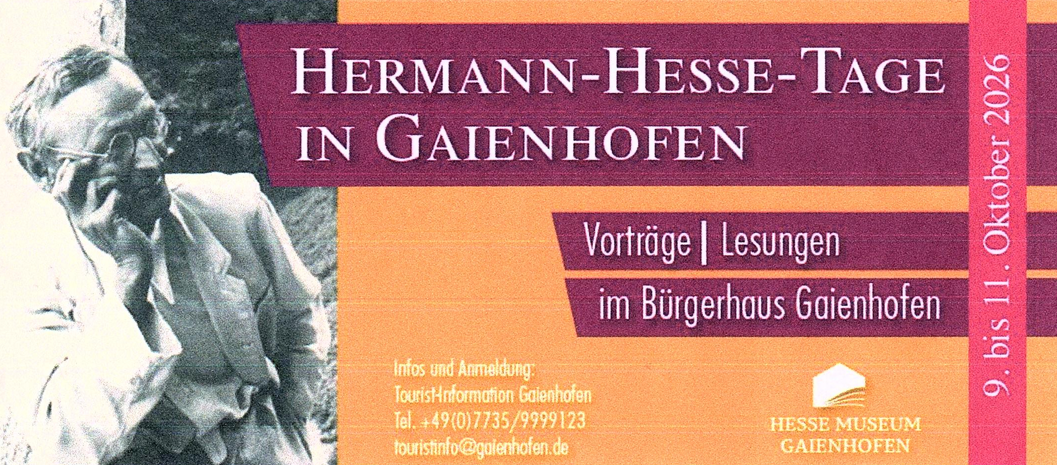 Die Gaienhofener Hermann-Hesse-Tage 2026 bieten von 9. bis 11. Oktober wieder ein abwechslungsreiches Programm, das sich unter der Überschrift "Gesellschaftliche Perspektiven im Spiegel von Hesses Werk" zusammenfassen lässt.