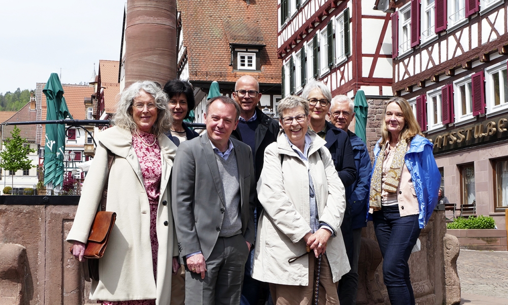 Stiftungs-Geschäftsführerin Elke Ruff und Vorsitzender Dr. Andreas Narr hießen den vielfach ausgezeichnete Autor und Übersetzer Anfang Mai in Calw willkommen. Auch die Findungskommision der Hesse-Stiftung, getragen von Sparkasse Pforzheim Calw und Südwestrundfunk, war vollzählige vertreten mit ihrer Vorsitzenden Jutta Bendt-Gloge, Dr.Ute Hübner, Dr. Ruth Jakoby, Christa Linsenmaier-Wolf und Tobias Scheffel.